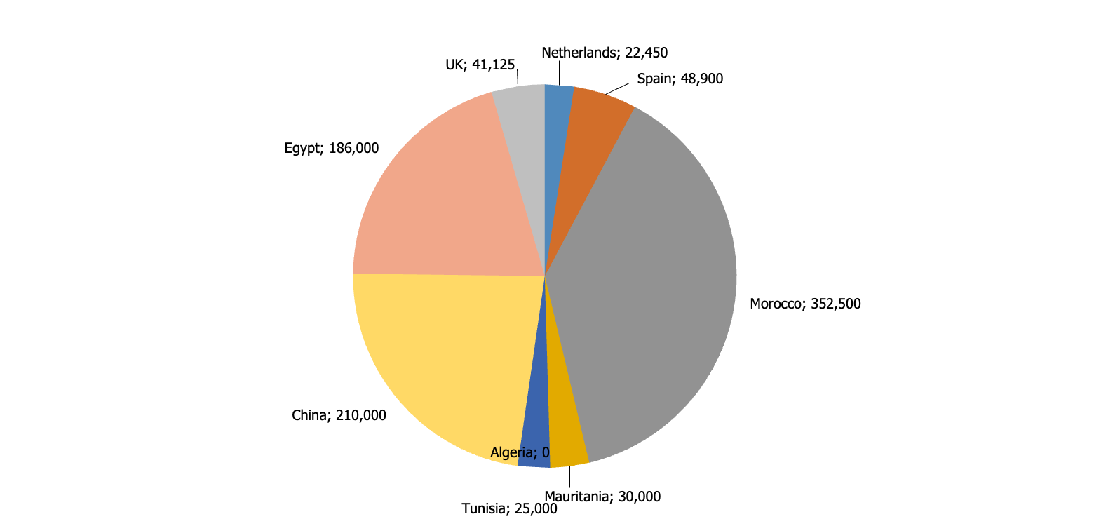 - Morocco is the most popular destination for grains at sea and accounts for more than 20% of all French grain exports; China is the 2nd most popular destination with more than 200k tons heading from France towards country's ports;