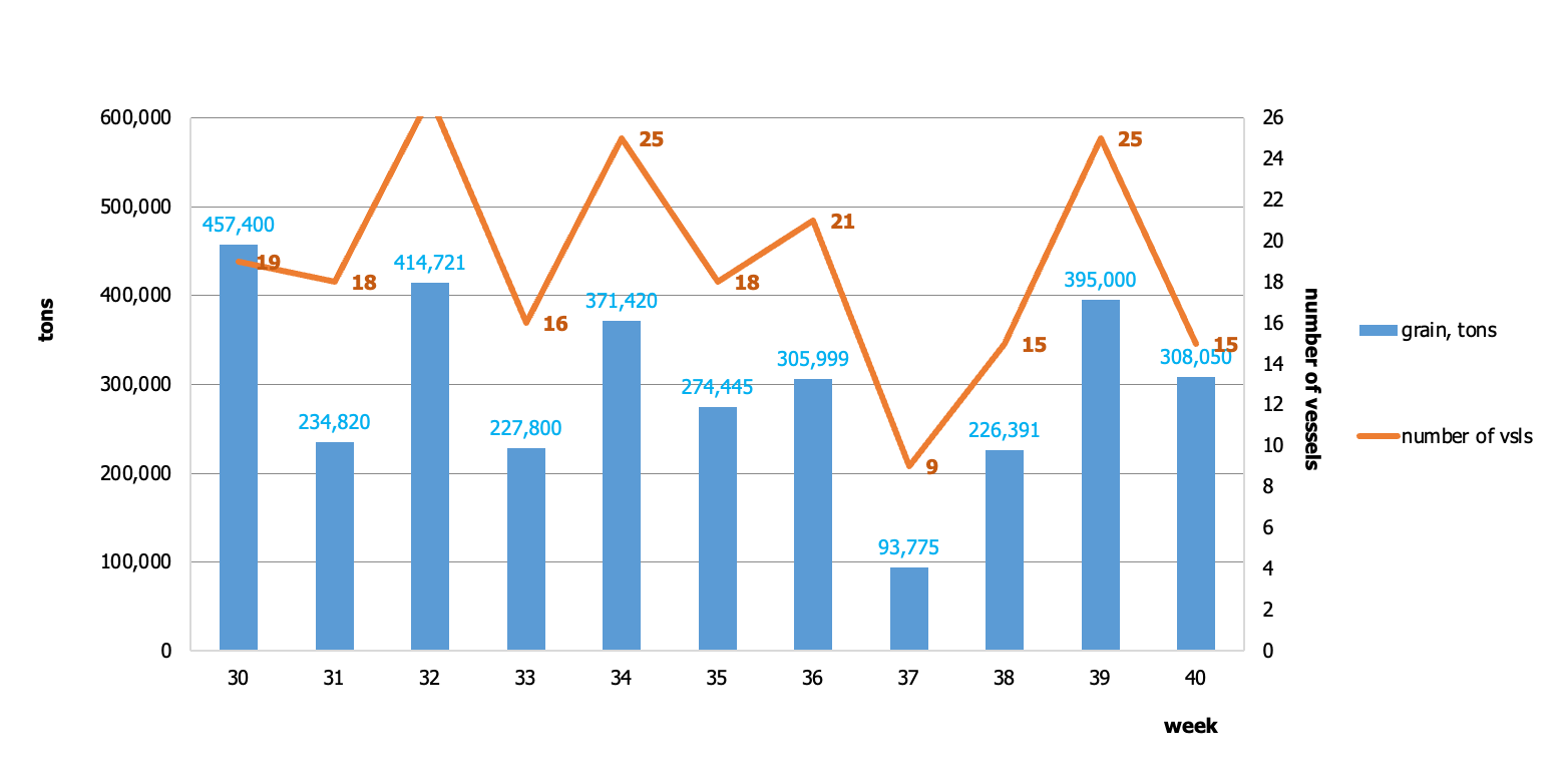 - The volume of discharged grain has increased to 433k tons, which is the highest figure within recent 3 months;