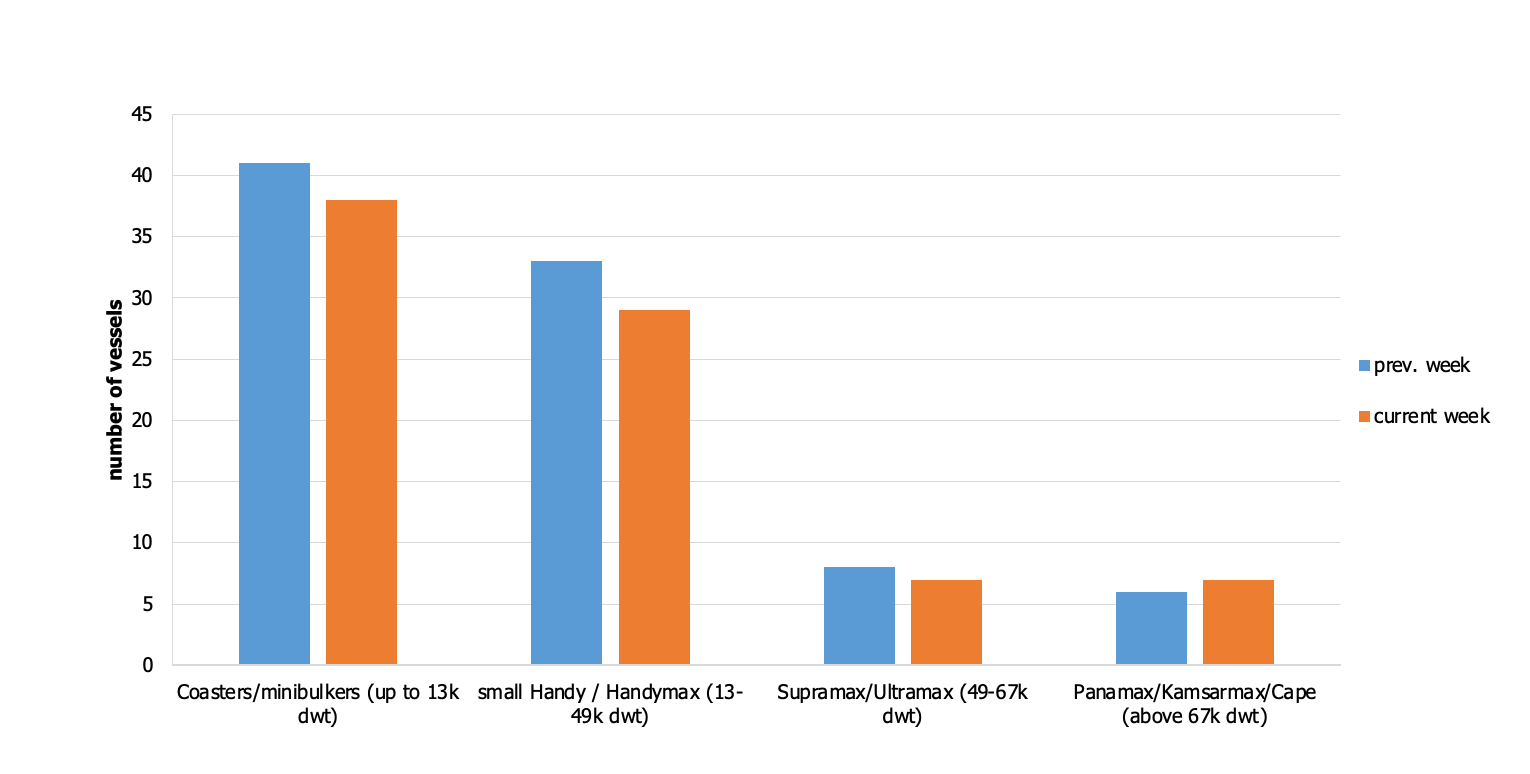 - Total number of vessels departed from France with grain onboard has declined from 25 to 15 units, meanwhile the volume of exported grain has inched down by only 22%;