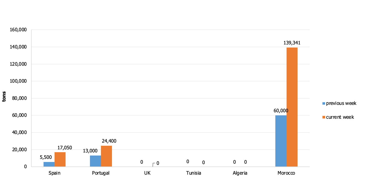 - Morocco, Portugal and Spain are among those importers who shows an upturn in discharged (imported) volumes over the week.